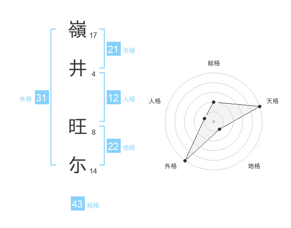 嶺井 旺尓さんを姓名の画数から五運を鑑定
