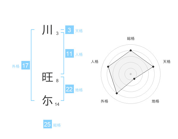 川 旺尓さんの総格は25画の4点!