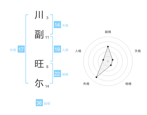 川副 旺尓さんの天格は14画の1点!