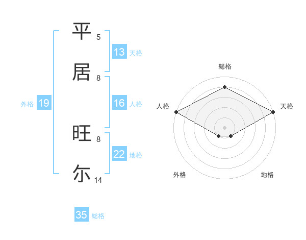 平居 旺尓さんを姓名の画数から五運を鑑定