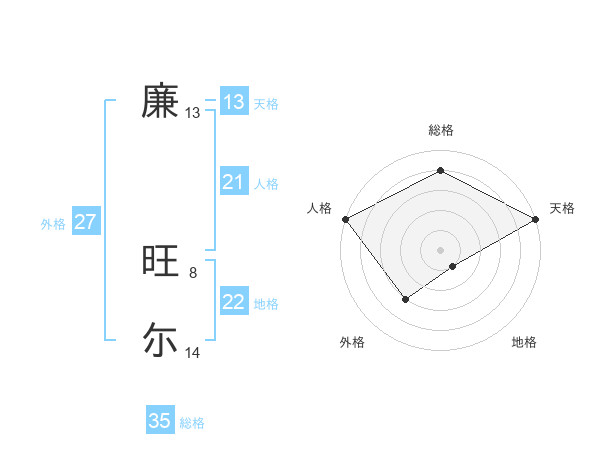 廉 旺尓さんを姓名の画数から五運を鑑定