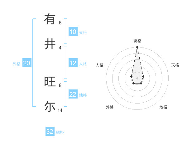有井 旺尓さんを姓名の画数から五運を鑑定