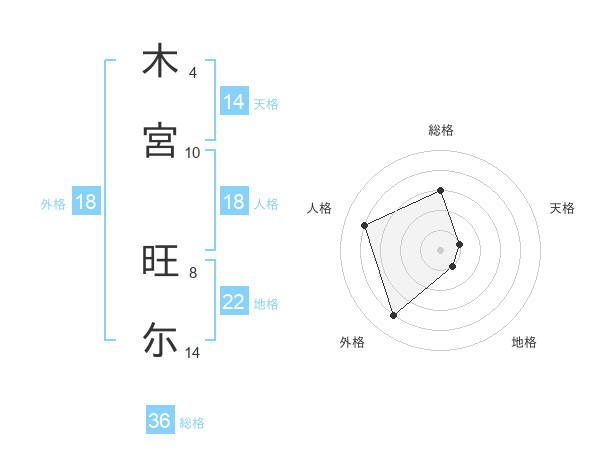 木宮 旺尓さんの天格は14画の1点!