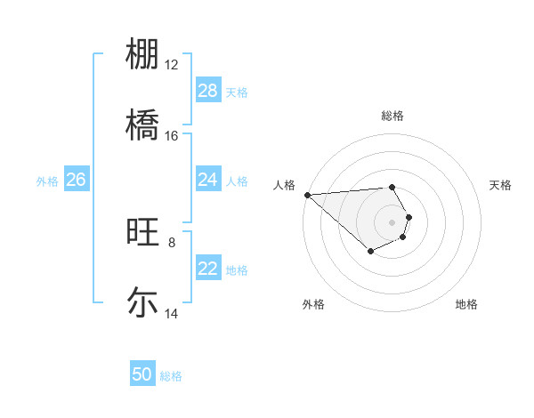 棚橋 旺尓さんを姓名の画数から五運を鑑定