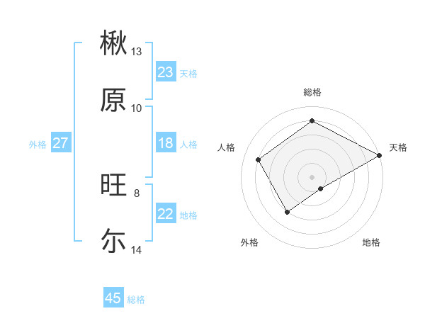 楸原 旺尓さんの総格は45画の4点!