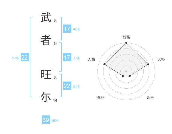 武者 旺尓さんの天格は17画の4点!