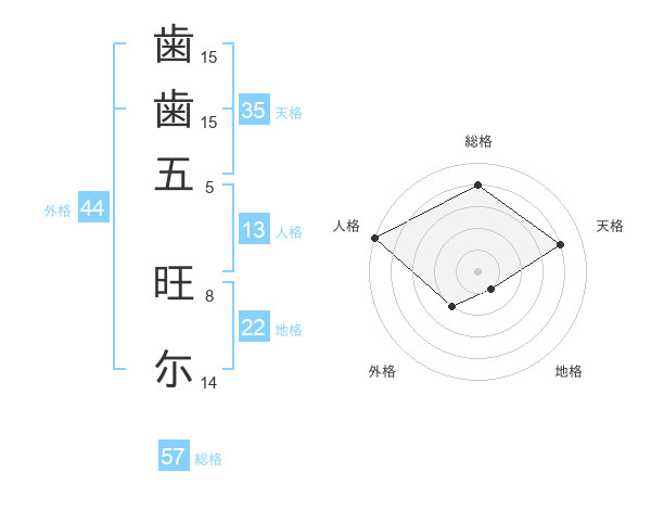 歯歯五 旺尓さんの総格は57画の4点!