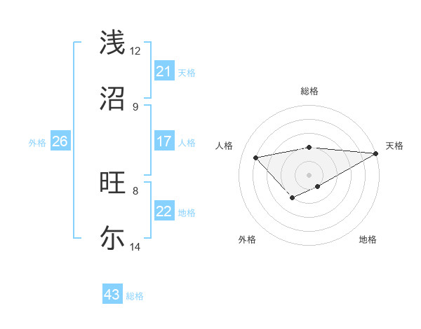 浅沼 旺尓さんの天格は21画の5点!