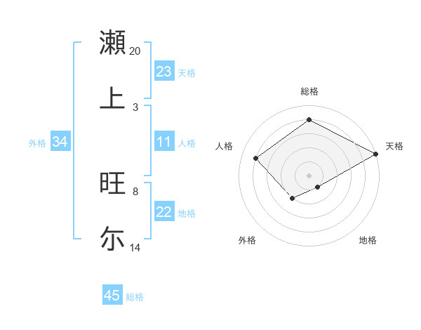 瀬上 旺尓さんを姓名の画数から五運を鑑定