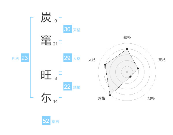 炭竈 旺尓さんを姓名の画数から五運を鑑定