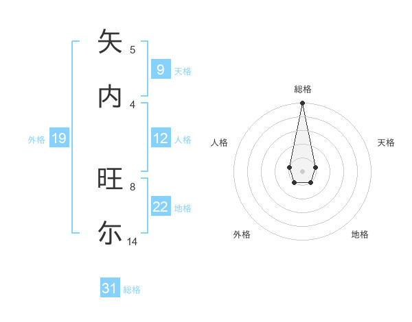矢内 旺尓さんの総格は31画の5点!