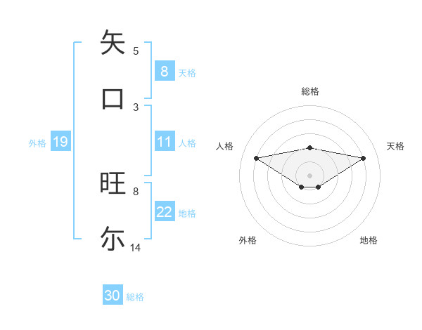 矢口 旺尓さんの総格は30画の2点!