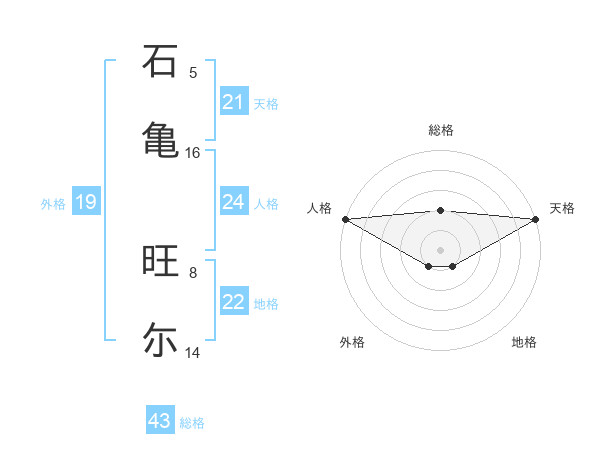 石亀 旺尓さんの天格は21画の5点!
