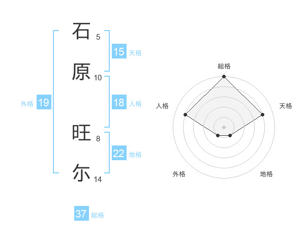 石原 旺尓さんの総格は37画の5点!