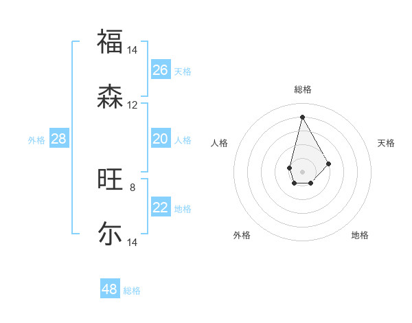 福森 旺尓さんの総格は48画の4点!