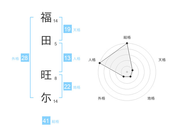 福田 旺尓さんの総格は41画の5点!