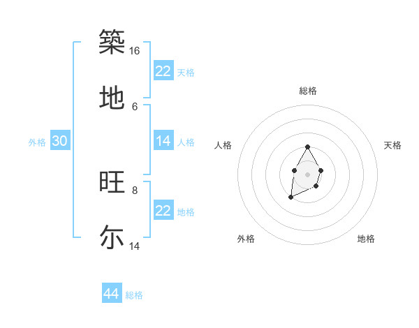 築地 旺尓さんの地格は22画の1点!
