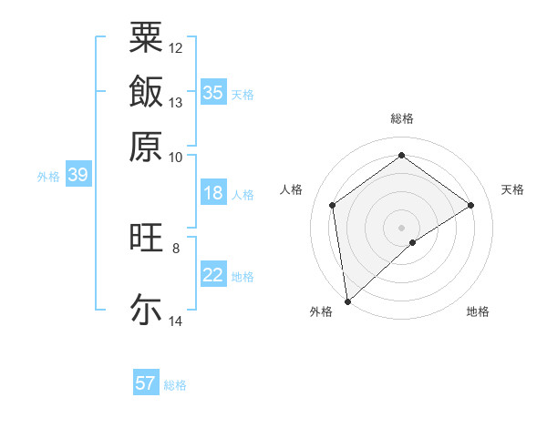 粟飯原 旺尓さんの外格は39画の5点!