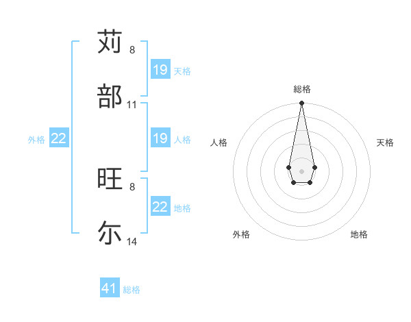 苅部 旺尓さんを姓名の画数から五運を鑑定