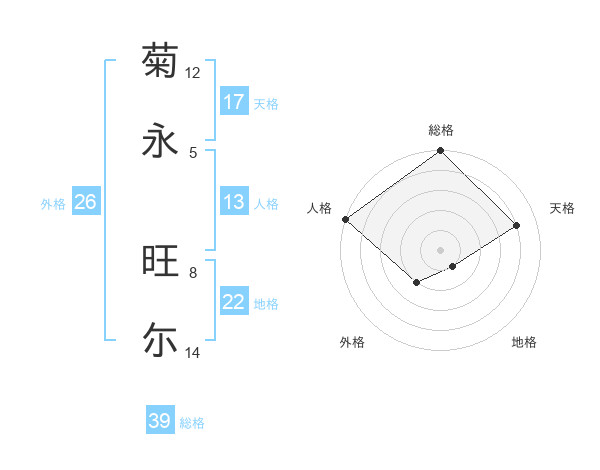 菊永 旺尓さんの天格は17画の4点!