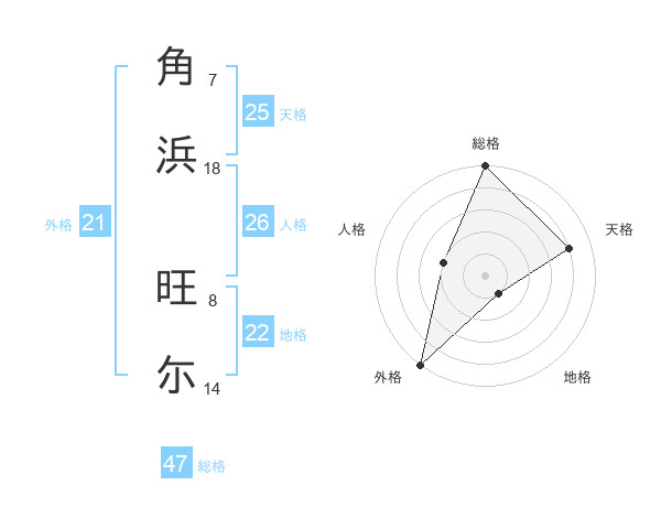 角浜 旺尓さんの総格は47画の5点!