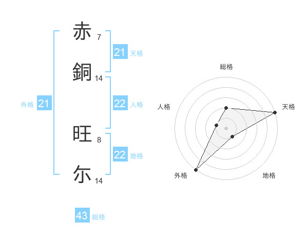 赤銅 旺尓さんを姓名の画数から五運を鑑定