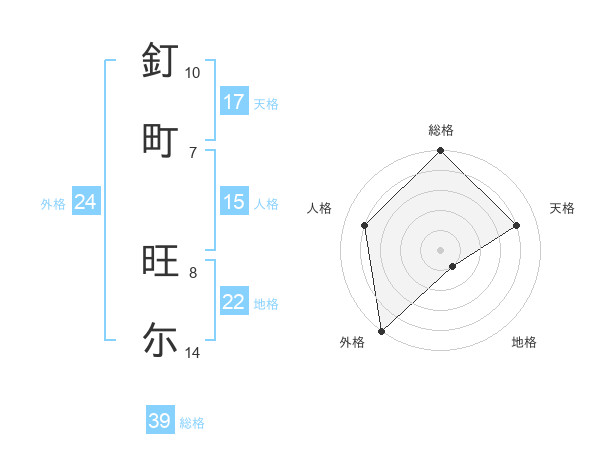 釘町 旺尓さんを姓名の画数から五運を鑑定