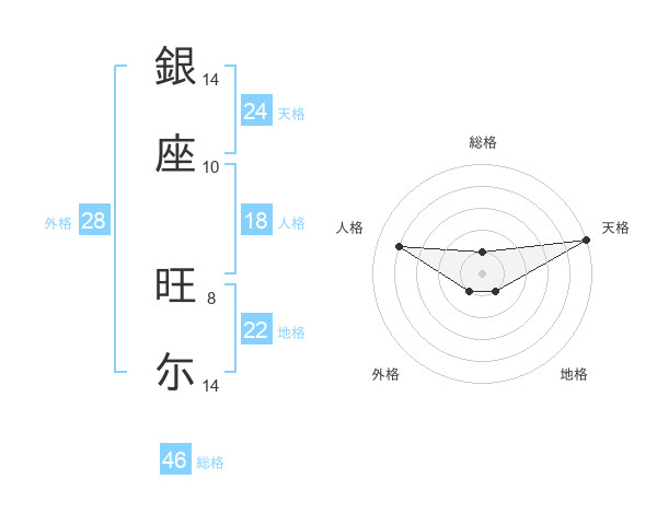 銀座 旺尓さんの天格は24画の5点!