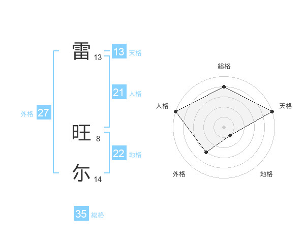 雷 旺尓さんを姓名の画数から五運を鑑定