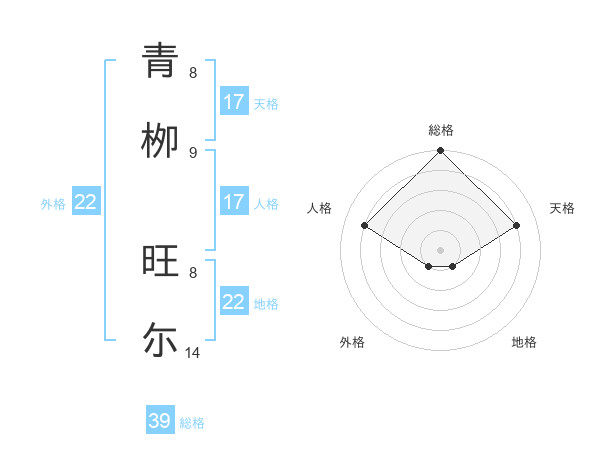 青栁 旺尓さんを姓名の画数から五運を鑑定