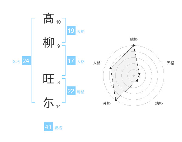 髙柳 旺尓さんの総格は41画の5点!