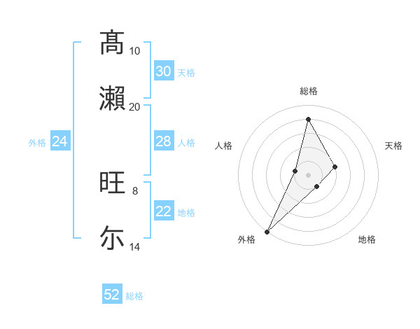 髙瀨 旺尓さんを姓名の画数から五運を鑑定