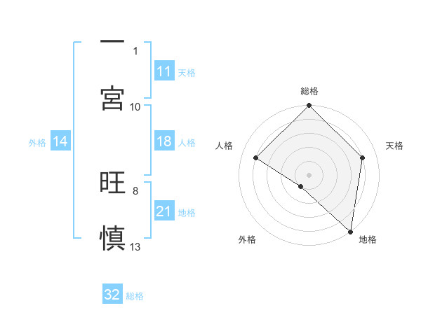 一宮 旺慎さんを姓名の画数から五運を鑑定