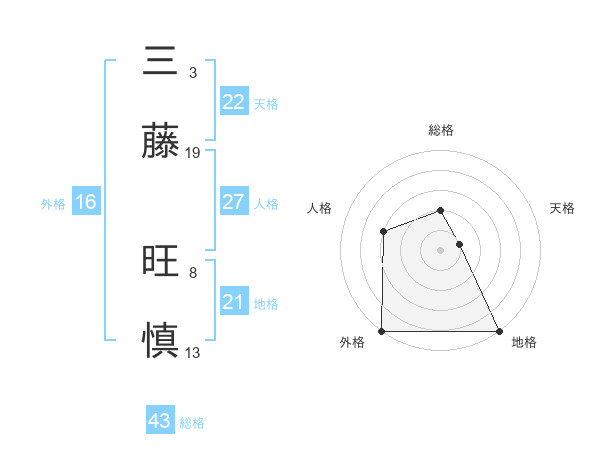 三藤 旺慎さんを姓名の画数から五運を鑑定