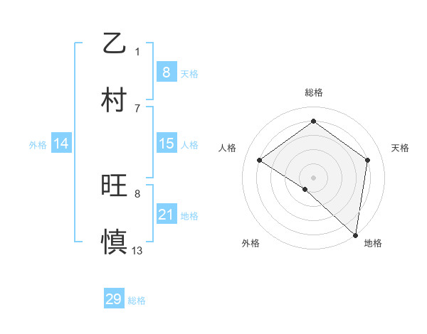 乙村 旺慎さんの総格は29画の4点!