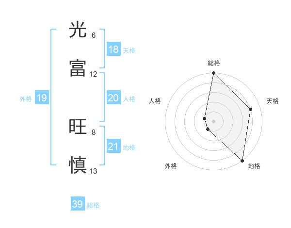 光富 旺慎さんの総格は39画の5点!