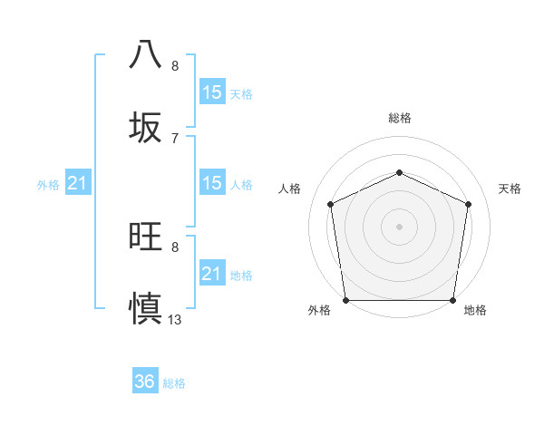 八坂 旺慎さんの外格は21画の5点!