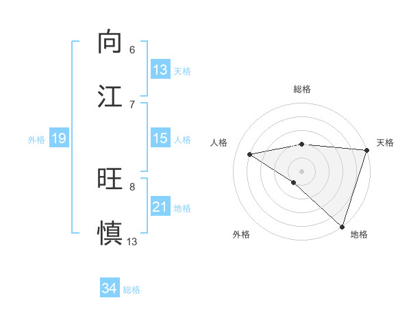 向江 旺慎さんを姓名の画数から五運を鑑定