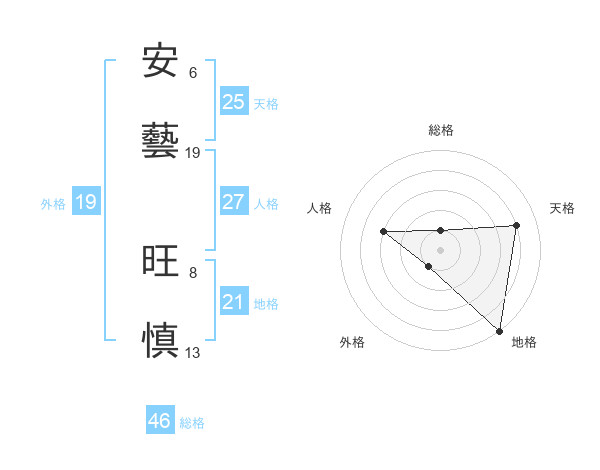 安藝 旺慎さんの総格は46画の1点!