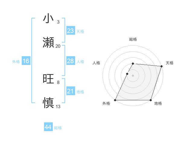 小瀬 旺慎さんの天格は23画の5点!