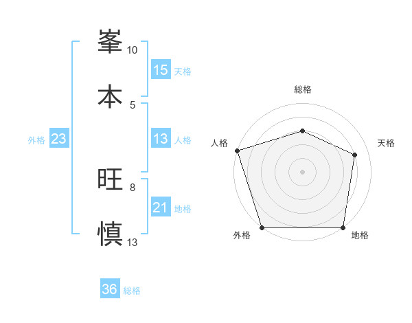 峯本 旺慎さんの地格は21画の5点!