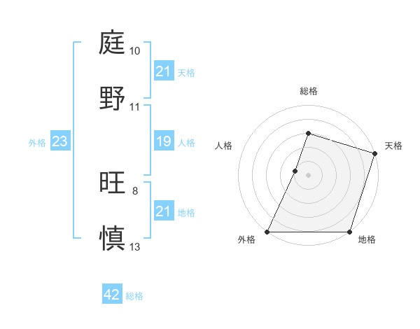 庭野 旺慎さんを姓名の画数から五運を鑑定