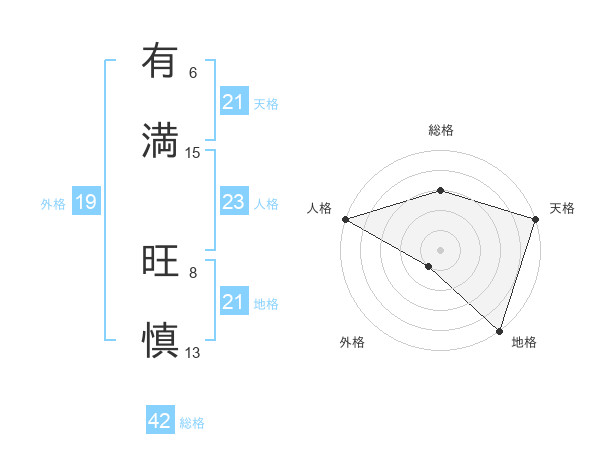 有満 旺慎さんを姓名の画数から五運を鑑定