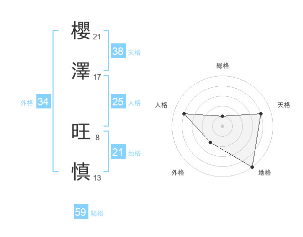 櫻澤 旺慎さんの総格は59画の1点!