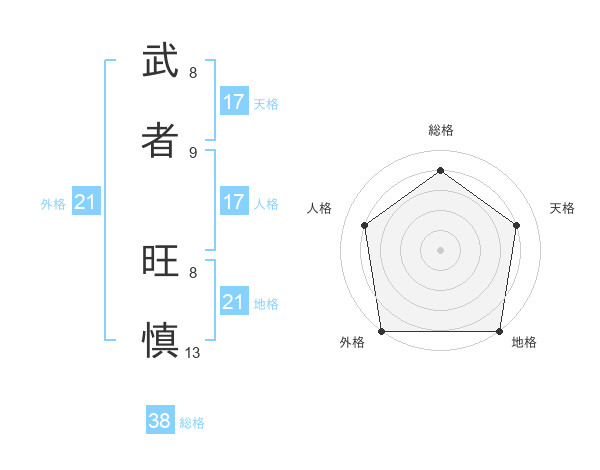 武者 旺慎さんを姓名の画数から五運を鑑定
