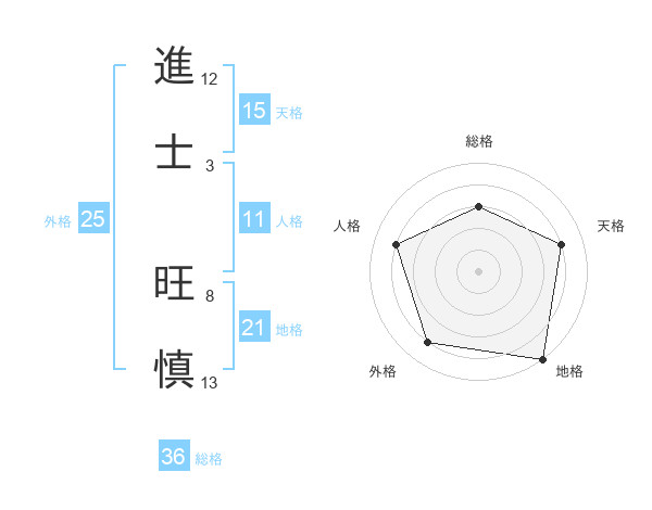 進士 旺慎さんの地格は21画の5点!