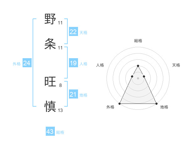 野条 旺慎さんを姓名の画数から五運を鑑定