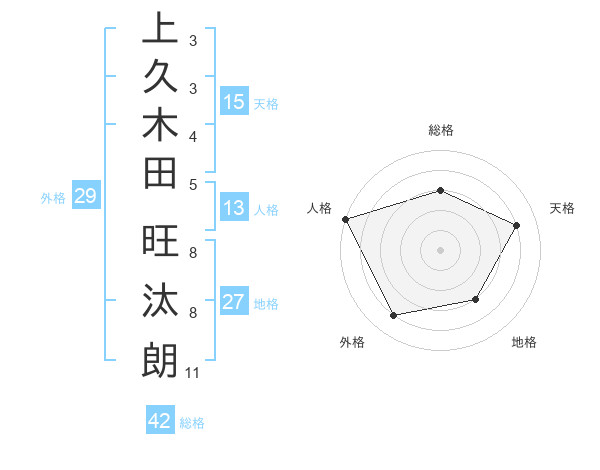 上久木田 旺汰朗さんの外格は29画の4点!