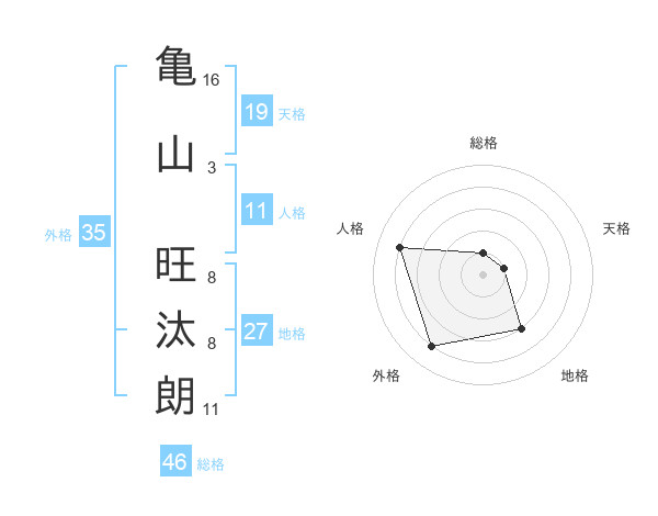 亀山 旺汰朗さんの天格は19画の1点!