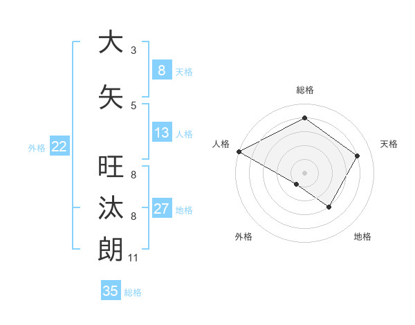 大矢 旺汰朗さんの総格は35画の4点!